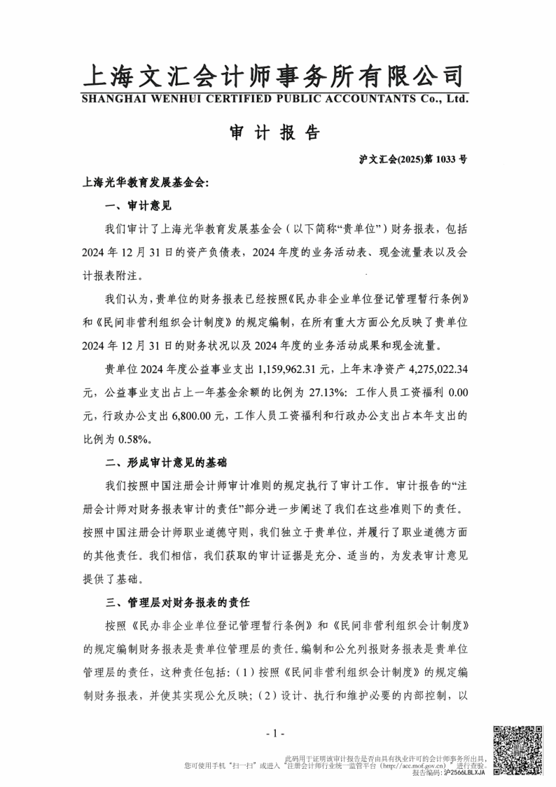 上海光华教育发展基金会2024年度审计报告